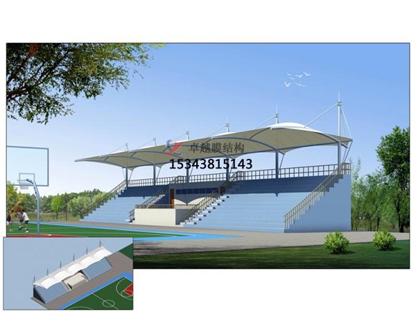 膜結(jié)構(gòu)主要用于體育設(shè)施中,學(xué)校操場體育看臺或主席臺的屋頂,除了大型體育場屋頂膜結(jié)構(gòu)也很常見。-一般看臺由貝殼形峰膜和端張膜組成,形式新穎活潑。巧妙地將鋼框架、索、膜組合在一起,以膜、膜邊索、脊索、山谷索、索、拉桿及一定的格梁穩(wěn)定。薄膜頂部過渡流暢,結(jié)構(gòu)美觀,光線柔和,整體造型相互輝映,別具一格。