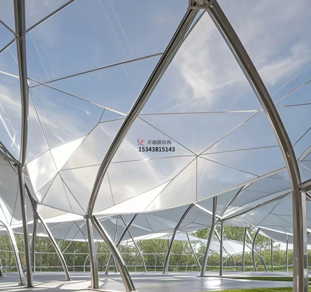 張拉索膜結(jié)構(gòu):張拉索膜結(jié)構(gòu)通過張拉使膜的內(nèi)部產(chǎn)生一定的預(yù)應(yīng)力,以抵御外界的風(fēng)荷載和其他荷載。這種結(jié)構(gòu)可以根據(jù)需要制成任意復(fù)雜曲面形狀,體現(xiàn)自然流暢之美,同時(shí)膜材的多種顏色選擇也使其能更好地適應(yīng)周邊環(huán)境,滿足建筑效果要求。